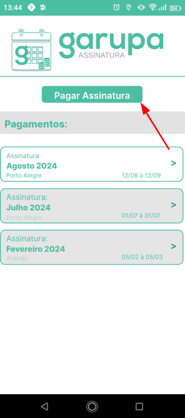 Lembrando que faltando 5 dias para acabar sua Assinatura Garupa o botão para Renovação ficará disponível para que você possa realizar um novo Pagamento.